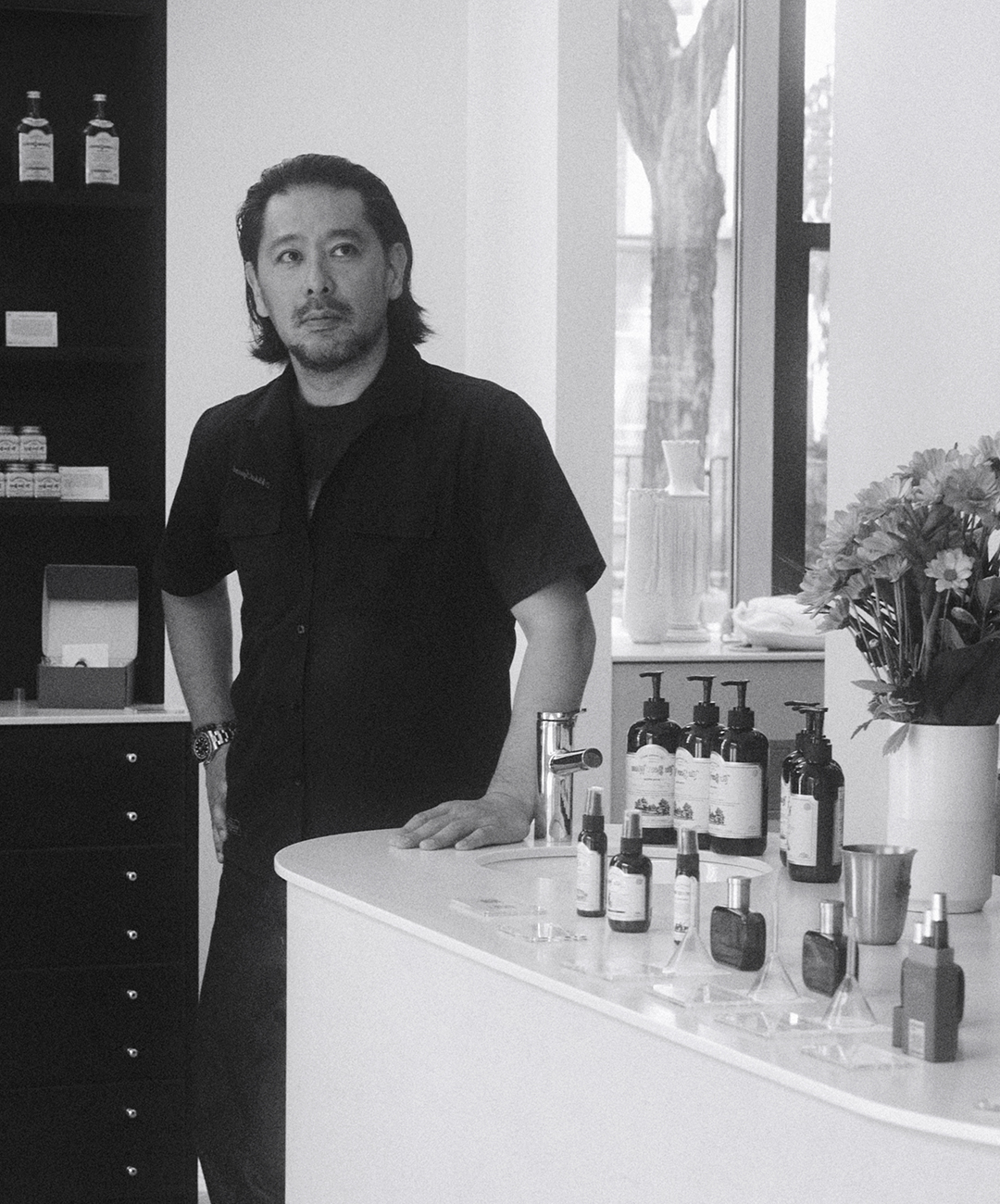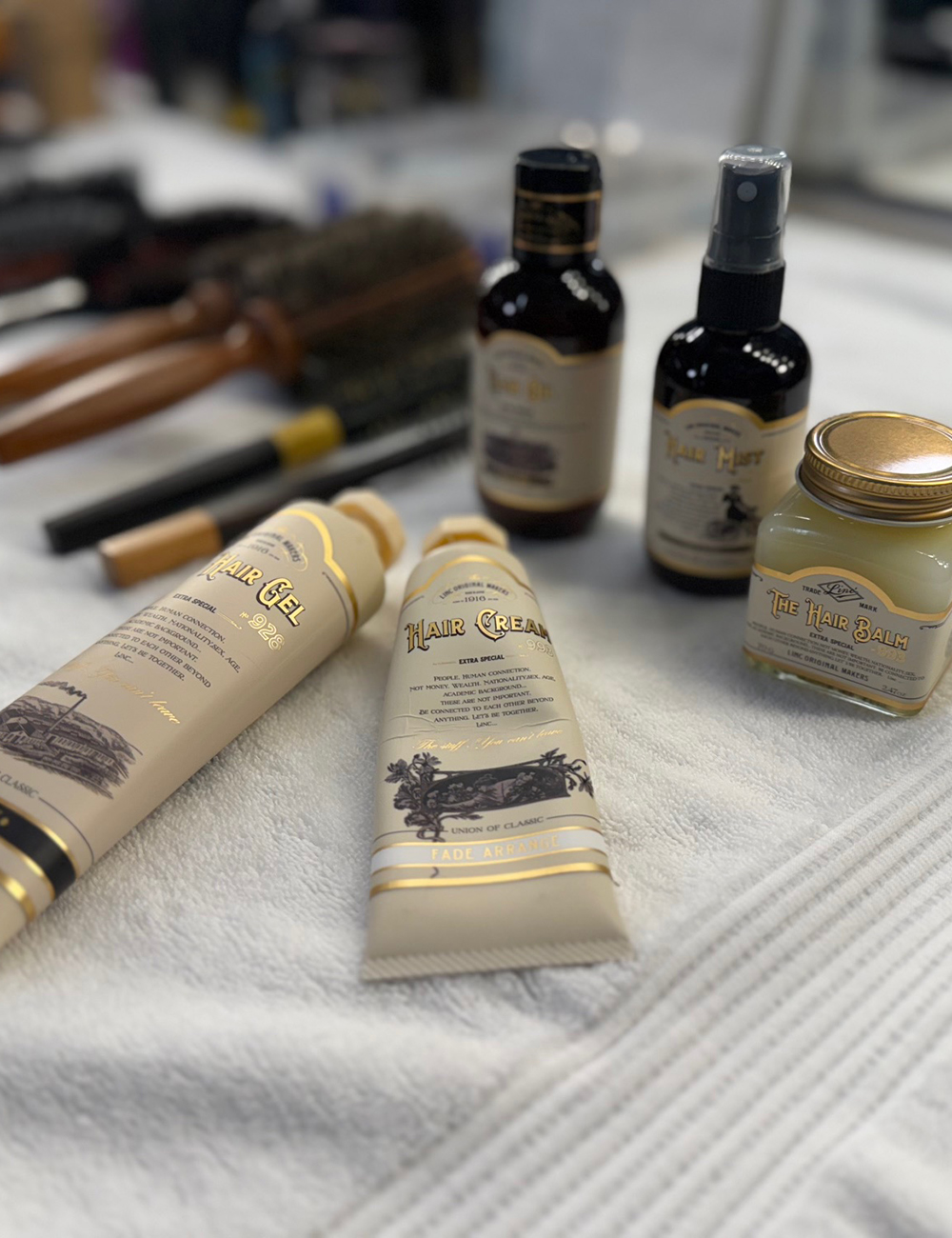 「モデルや俳優は、一般の人が考えられないような、色々な場面で髪にダメージを受けています。例えばショーでのスタイリングにおけるヘアアイロンなど熱器具の使用回数、月に何回も飛行機で移動することによる髪の保湿力の低下。だから髪を休ませないといけない。そんな時LINCのオイルを『これ髪を修復してくれるから使ってよ』と渡すんです。するとみんな次の日『すごくよかった!』って感動して言ってくれて。やっぱりすごいオイルなんだな、と実感します」。このケアオイルは、仕事だけでなく個人的にも使っているほど、気に入っているプロダクトだと語ってくれた。